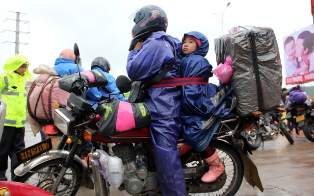 為了能讓游子們能夠平安順利到家,如果在路上遇到帶著小孩和老人們,有需要的時(shí)候請(qǐng)伸出援手,互相幫助。在濕冷的冬天里看見開著摩托車返鄉(xiāng)的隊(duì)伍,請(qǐng)適當(dāng)?shù)谋茏專屗麄儼踩郊摇?