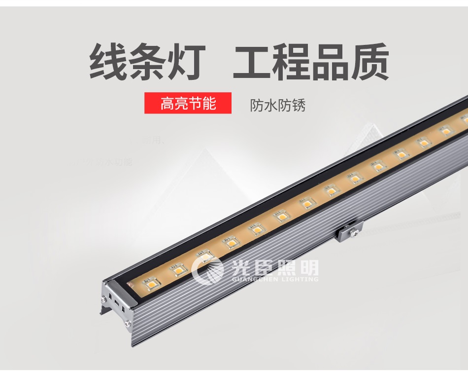 led線條燈即led洗墻燈系列鋁型材燈體,緊湊輕巧端蓋和安裝支架由鋁合金高壓壓鑄耐高溫硅橡膠密封圈,保證防水的可靠性。燈具可單個(gè)或多個(gè)組合安裝。適用于各種建筑物,室內(nèi)外局部或輪廓照明。