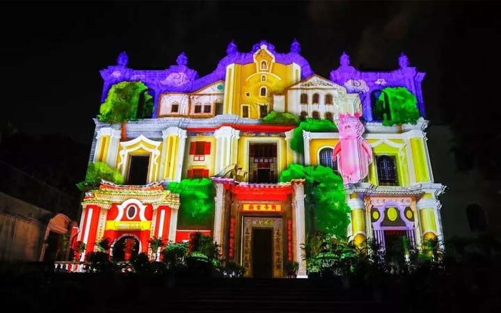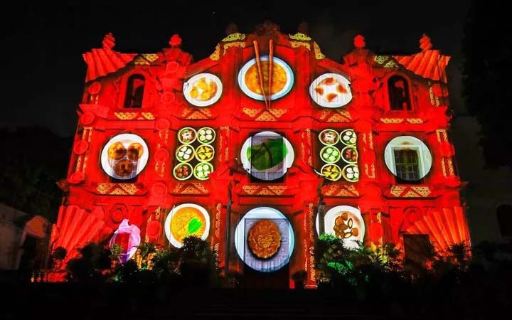 而今年恰逢澳門回歸20周年,光影節(jié)的光雕表演以“慶祝澳門特別行政區(qū)成立20周年”為主題。本次光影節(jié)制作團(tuán)隊(duì)來自西班牙、深圳及澳門本地團(tuán)隊(duì)共同為具有標(biāo)志性建筑的大三巴牌坊披上炫麗的彩衣。