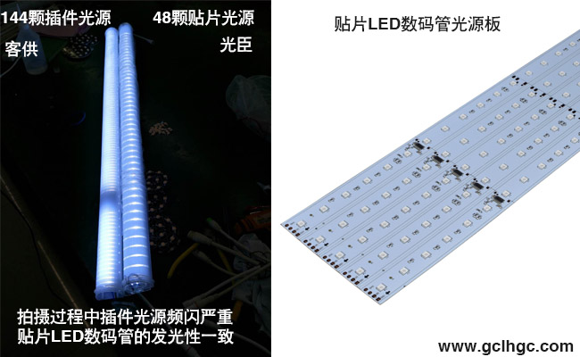 LED貼片數(shù)碼管定制順利完成,從圖片看,大家也許會(huì)覺得亮度不一樣,相對于144顆插件燈珠的LED數(shù)碼管,光臣照明的48珠貼片數(shù)碼管顯得略為平靜,因?yàn)樵谂臄z的過程中,插件數(shù)碼管的頻閃嚴(yán)重,導(dǎo)致相機(jī)曝光過大,這也反應(yīng)了貼片LED數(shù)碼管的穩(wěn)定性和發(fā)光一致性相當(dāng)好。