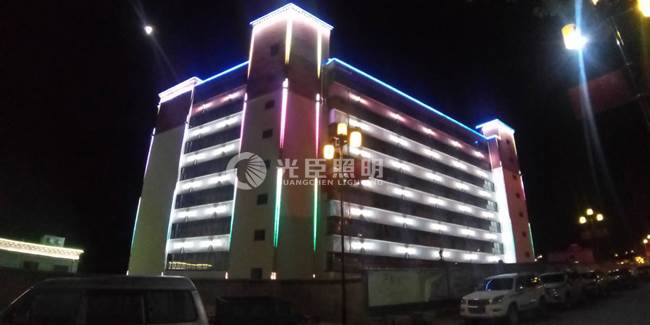 比如西藏地區(qū)樓房以白色紅邊為主,很少用金黃光色溫。近期項目是一個西藏地區(qū)的一個宿舍樓,白墻紅邊的墻身,所以在色溫選擇上用了白光及全彩。本次項目用了白光雙頭壁燈、白光洗墻燈以及全彩外控線條燈,完工亮燈效果符合設計圖紙,客戶驗收完成。