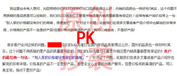對于這種模仿到“骨架子”里的精神,一直努力給客戶朋友們編寫很多關于光臣動態(tài)和洗墻燈產(chǎn)品咨詢的黃小編想對共同努力的朋友們說:“要來拿個簽名不?”,玩笑而已,我不是作家,不是明星,算是一個美女,光臣照明你們值得一來,好吧!我玩笑開完了,對于這種抄襲行為,黃小編以前也說過,模仿再像都不是統(tǒng)一老壇酸菜面,不~廣告看多了,應該是:模仿到骨架子里也做不到光臣照明的精髓!